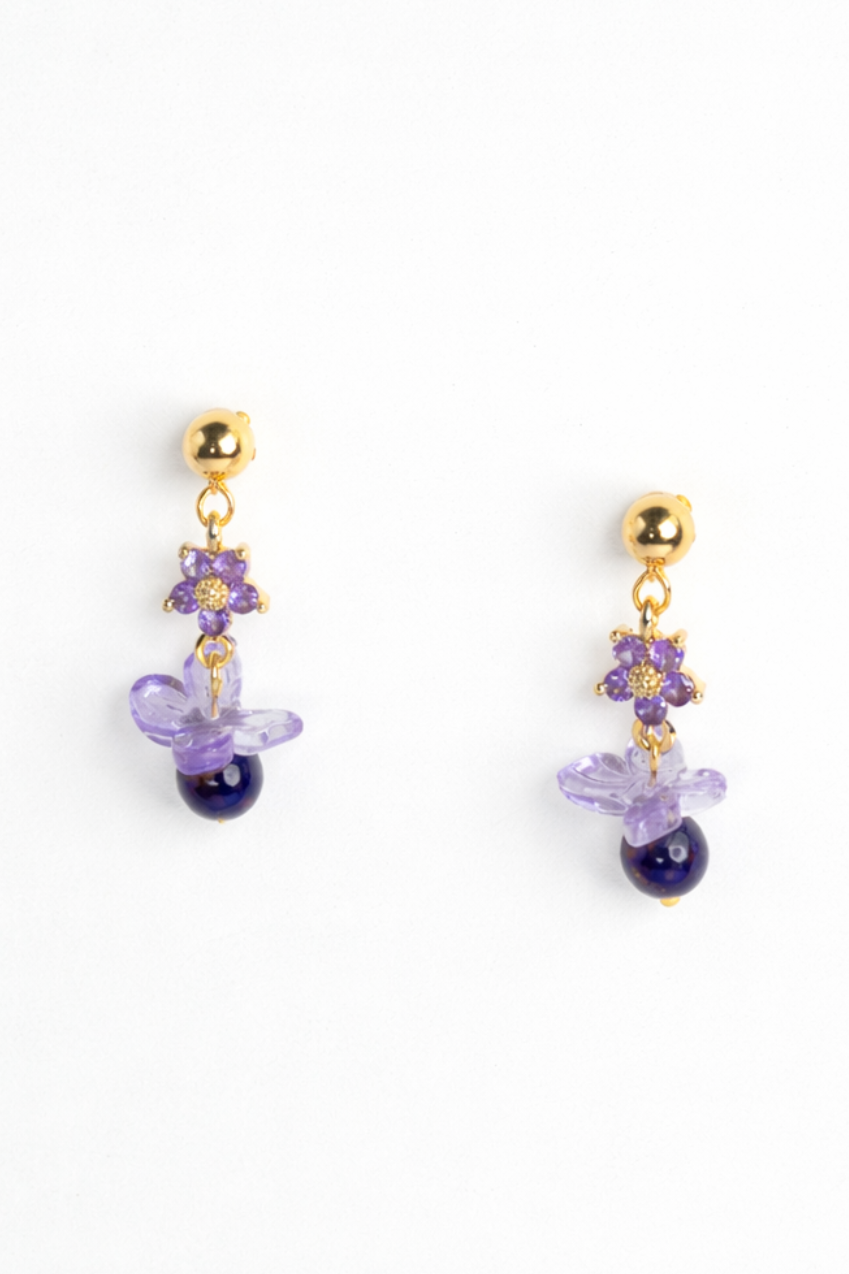 Midnight Earrings feature deep blue lapis lazuli beads paired with delicate crystal accents, creating a subtle contrast of colour and texture. The design combines small, layered elements that add movement without feeling heavy.